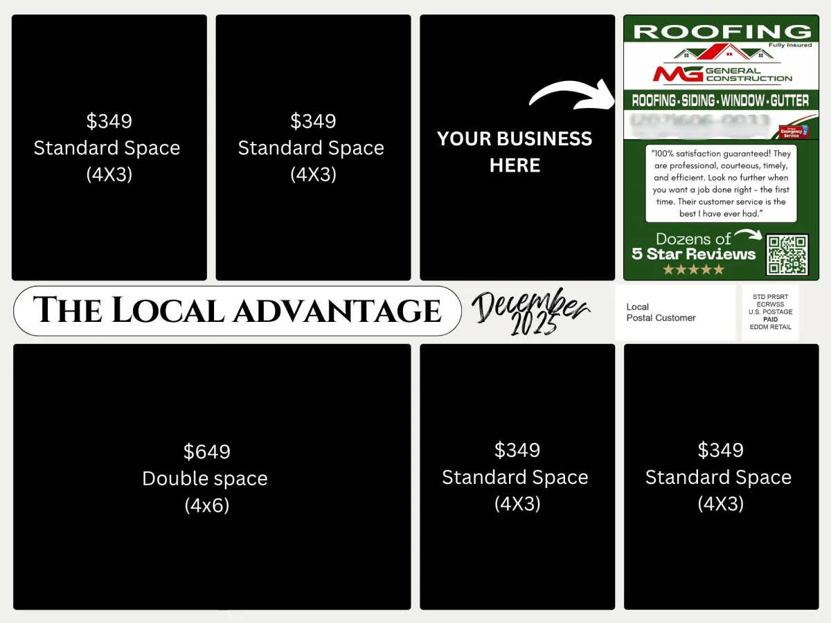 Delivered directly to mailboxes through USPS, ensuring maximum visibility for your business.